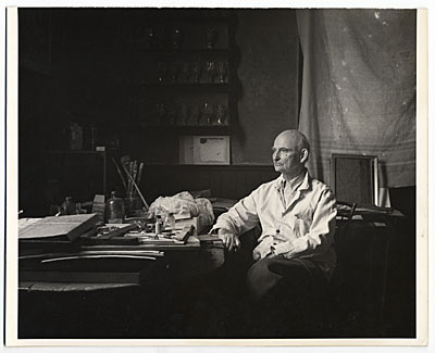 Photo: Carl Ruggles at work table by John Atherton, ca. 1950.
